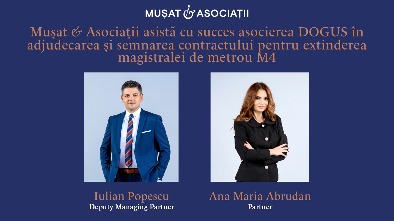 Mușat & Asociații anunță finalizarea cu succes a procedurii de atribuire și semnarea contractului de către DOGUS pentru un proiect de infrastructură de importanță strategică pentru București – extinderea magistralei de metrou M4. Echipa coordonată de Iulian Popescu, Deputy Managing Partner si Ana Maria Abrudan, Partner, a reprezentat clientul pe tot parcursul procedurii, inclusiv în fața Consiliului Național pentru Soluționarea Contestațiilor (CNSC), unde soluția favorabilă a confirmat atribuirea contractului în favoarea DOGUS.